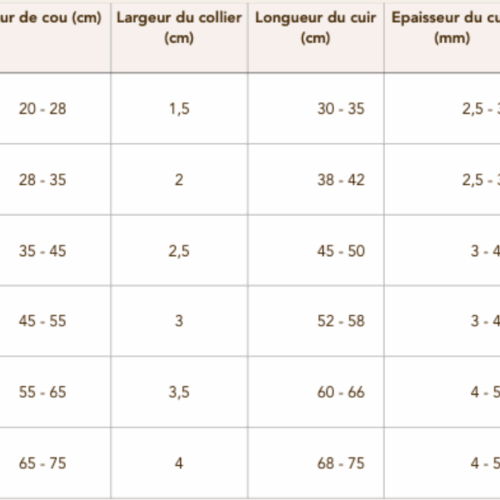 Tailles pour le bracelet :