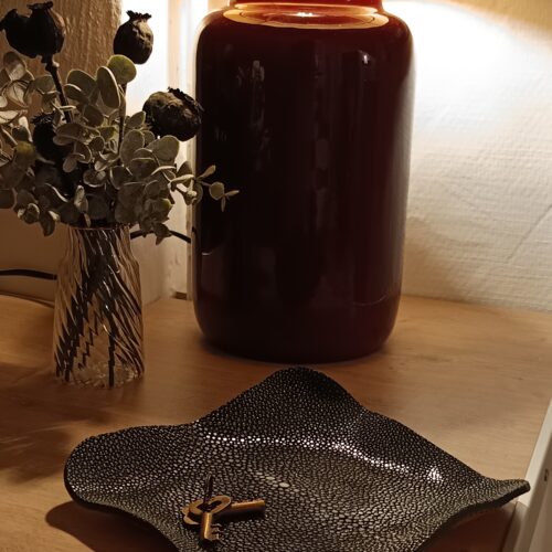 ce vide-poche devient un écrin discret pour vos bijoux délicats, dans un format harmonieux de 18 × 18 cm.